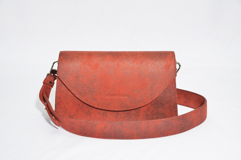 Skórzany, szeroki regulowany pasek zakończony metalowym karabińczykiem umożliwia noszenie na wysokości talii albo na ramieniu, również na skos